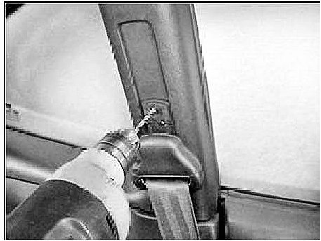 3. Unfasten the upper anchor mounting bolt (14 mm) and remove the Upper Anchor from the 'B' pillar.