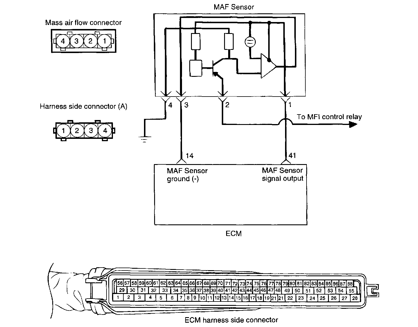 1. If the engine stalls occasionally, start the engine and shake the MAF sensor harness. If the engine stalls, check for poor contact at the MAF sensor connector.