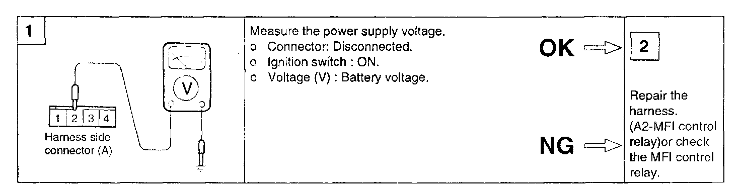 2. If the MAF sensor output voltage is other than 0 when the ignition switch is turned on (do not start the engine). Check for the faulty MAF sensor or ECM.