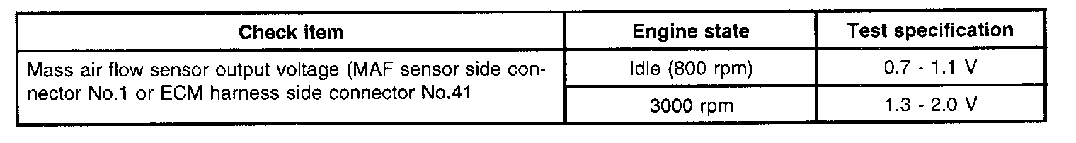 3. If the engine can be idle even if the MAF sensor output voltage is out of specification, check for the following conditions;