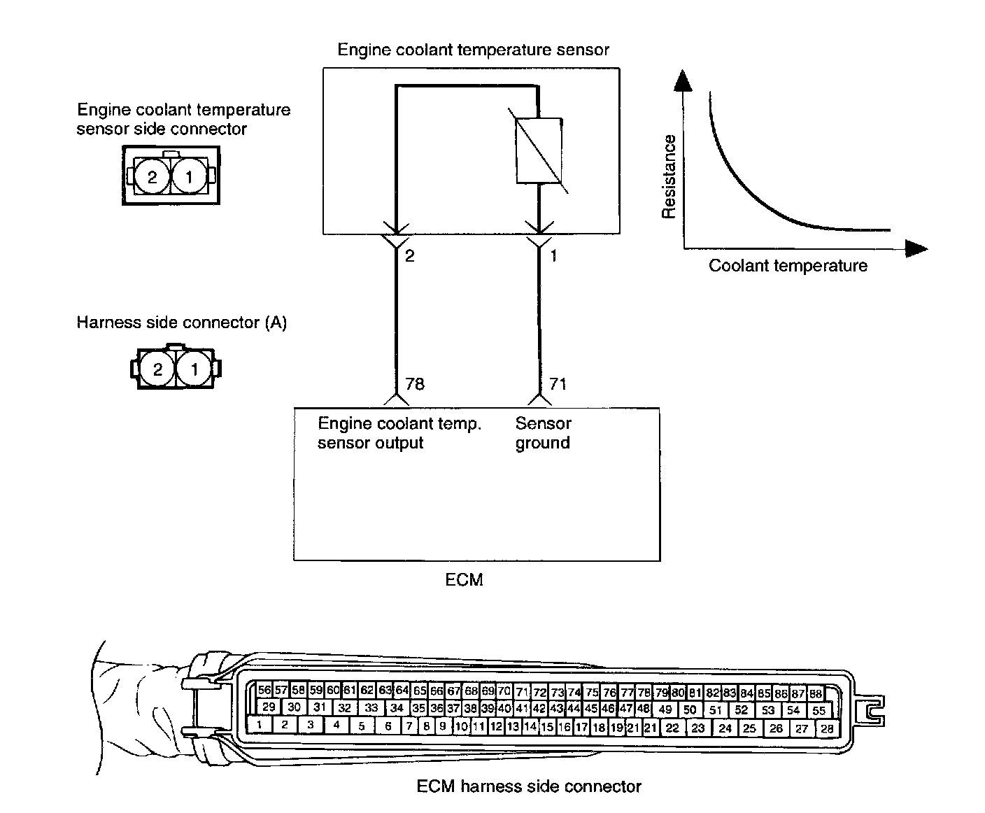 Coolant Temperature Sensor/Switch (For Computer): Testing and Inspection