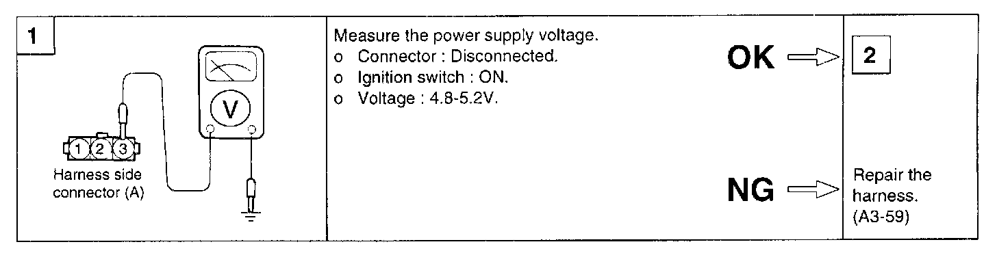 NOTE: If voltage is not within specifications, there is leakage. Inspect the fuel tank and hoses toward canister and fuel neck. Then repair or replace relevant parts.
