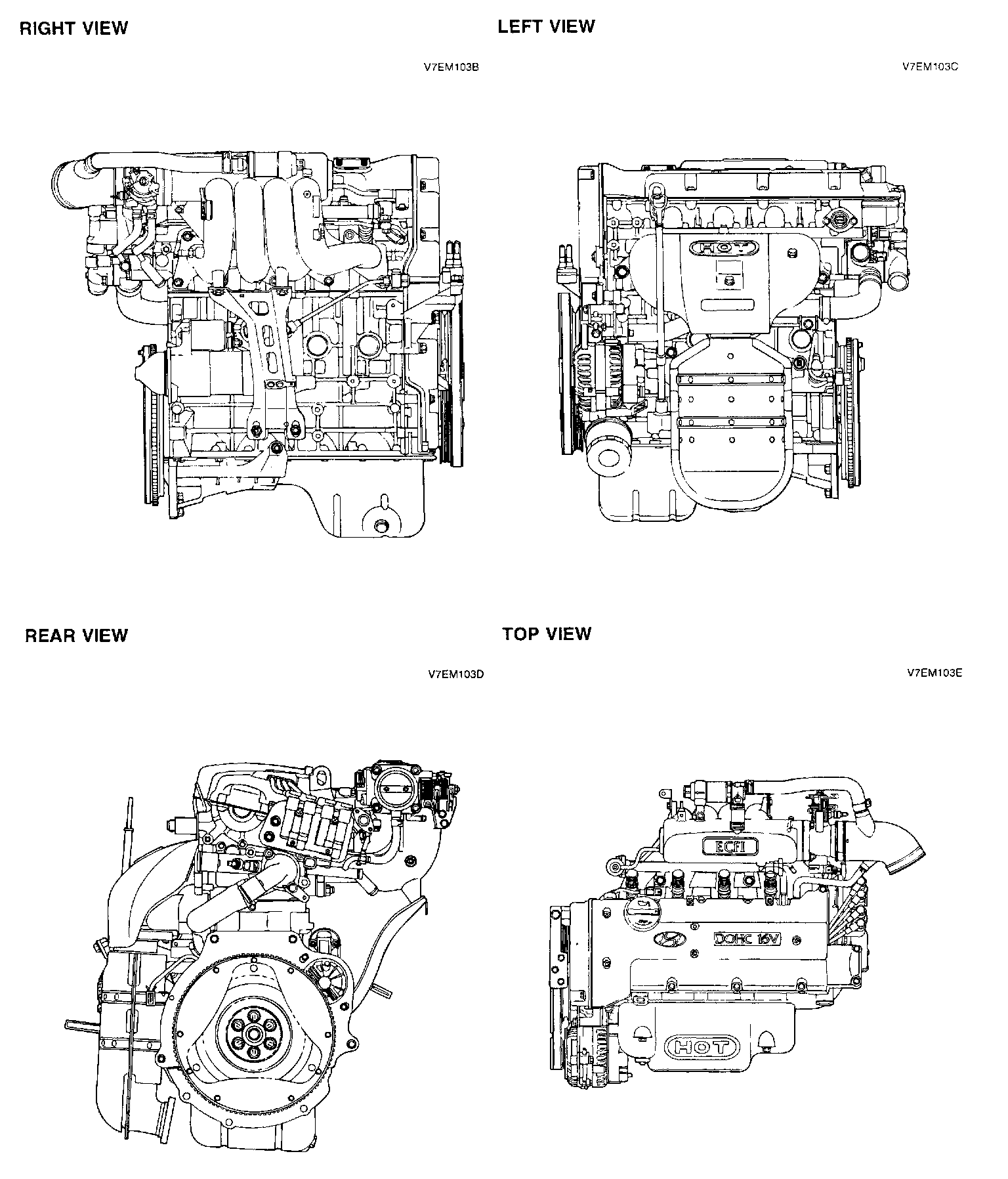 RIGHT, LEFT, REAR, AND TOP VIEWS