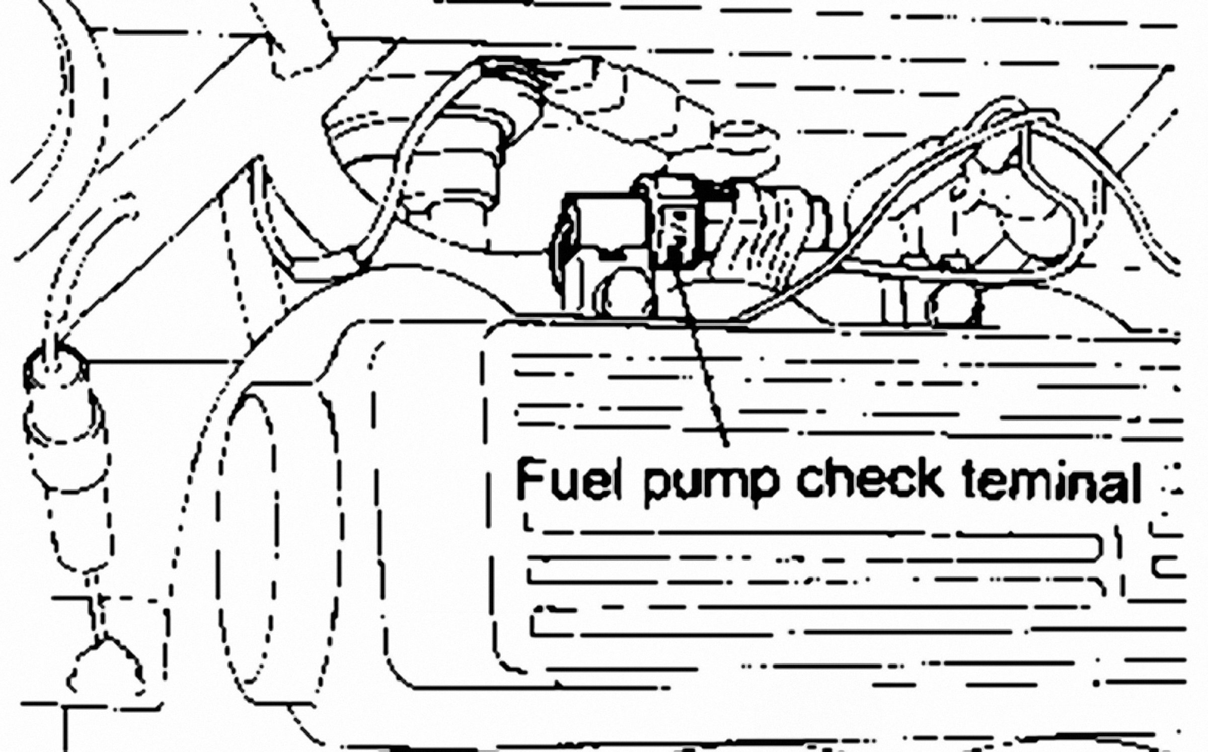 The fuel pump inspection terminal located in engine compartment is used to check the fuel pump operation by connecting battery voltage directly to the terminal.