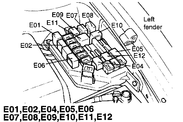 E01 (A/C Relay) To E12 Engine Compartment Fuse/Relay Box: