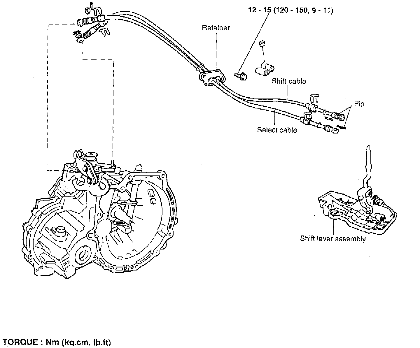 2. Installation of shift lever and select cable.