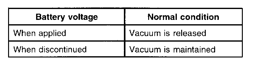 4. Apply vacuum and check when voltage is applied to the evaporative emission canister purge solenoid valve and when the voltage is discontinued.