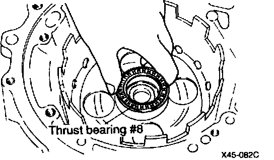 42. Apply a coating of petroleum jelly to thrust bearing #8, and then attach to the kickdown drum.