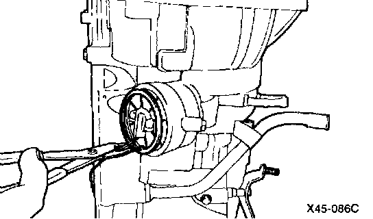 60. Install the oil filter. Tighten the four oil filter mounting bolts to 5 - 7 Nm (50 - 70 kg.cm, 4 - 5 ft. lbs.)