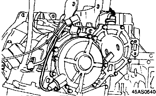 55. Install the oil pump assembly by tightening the six bolts evenly. When installing this oil pump assembly, be careful that the thrust washer remains in place.