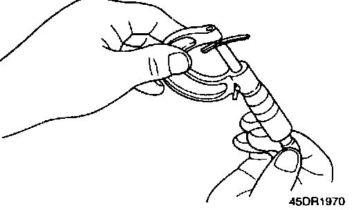 67. Place two pieces of solder, roughly 10 mm (0.4 inch) long and 3 mm (O.12 inch) in diameter, at the position shown on the differential bearing retainer outer race.
