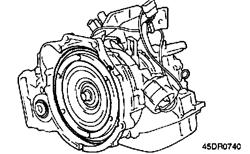 76. After applying automatic transaxle fluid to the outside surface of the oil pump-side cylindrical portion of the torque converter, install the torque converter carefully so as not to damage the seal lip. Make certain that the torque converter is in mesh with oil pump drive gear.