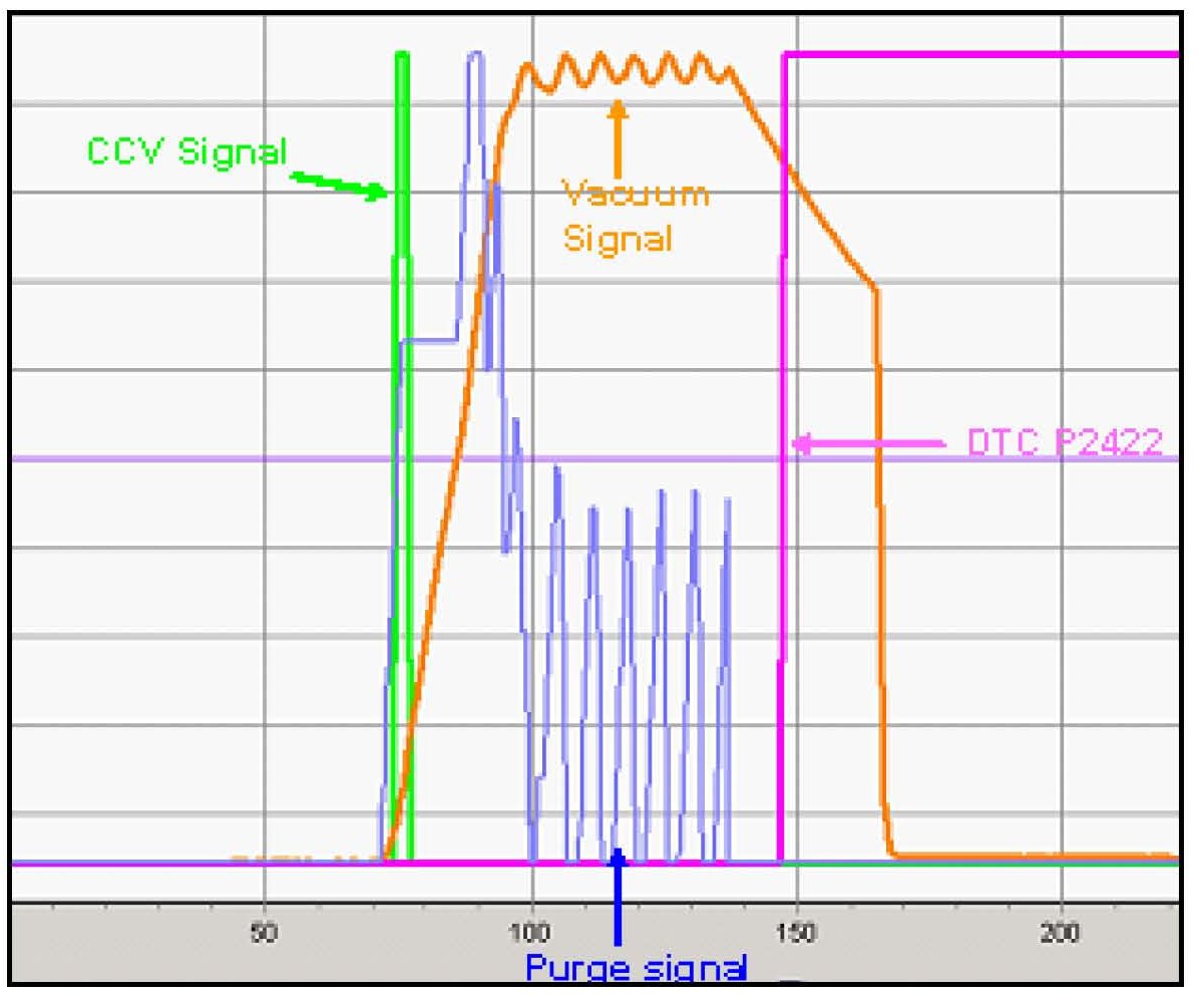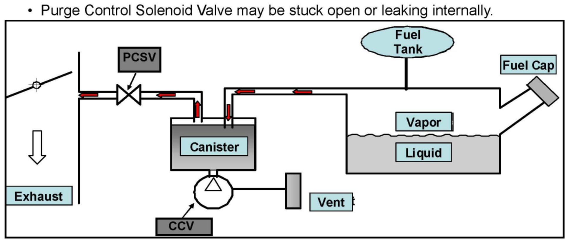 ^ The first check performed is to confirm if the PCSV is closing completely or is leaking vacuum. Resulting DTC is P0441 (Purge Flow Incorrect).
