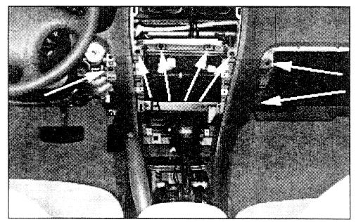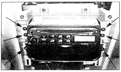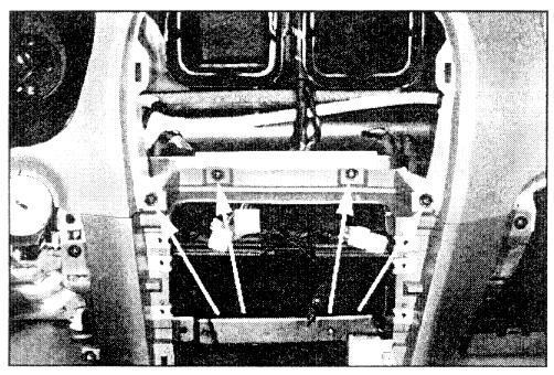 5) Remove the radio/HVAC trim panel. Disconnect the wiring and remove the trim as a unit.