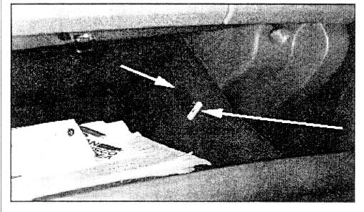 7) Remove the contents of the glovebox. Remove the glove box guides from inside of the glovebox. Remove the glovebox door damper clip (white). Remove the glovebox door (two 10 mm bolts and two screws).