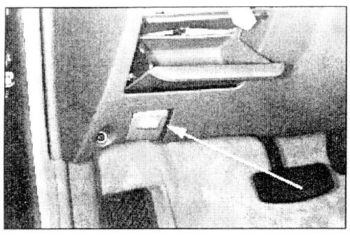 8) Remove the glovebox housing trim panel (one 10 mm nut and two screws). Make sure to leave the glovebox light switch and lamp wiring connected to ensure correct wiring orientation.