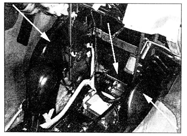 17) Remove the lower screws from the rear seat heating ducts. Pull and lift the heat ducts out of the way for better access to the ECM/TCM mounting screws.