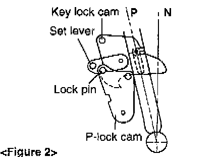 (1) Move A/T lever to "P" position to set key lockcam and P-locks shown figure 2.