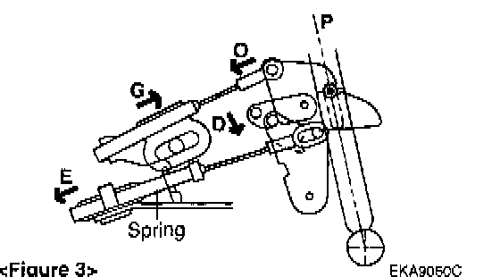 (9) Doing the work of (8), slightly pull outer casing of key lock cable direction "G" to stretch cable. Then fix outer casing with nut.