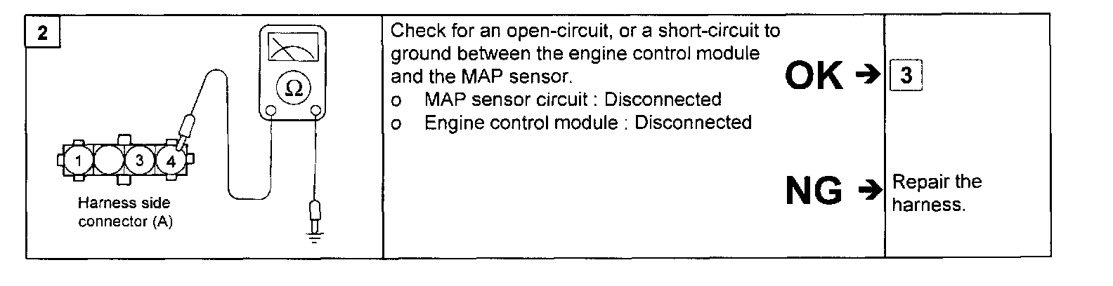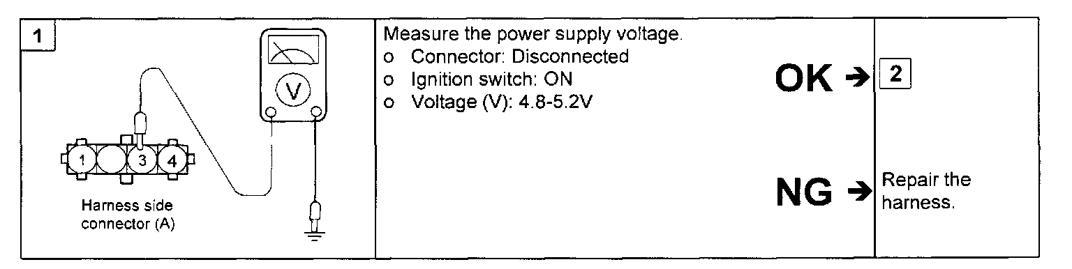 1. Connect the voltmeter between 1 and 4 of MAP sensor connector