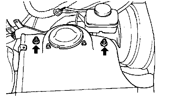 4. Remove the 2 nuts from the wheel house panel then remove the upper arm assembly.