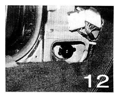 11. Using the supplied alcohol swab, clean the drivers kick panel cavity metal around the hole directly behind the grommet as shown in photo 11.