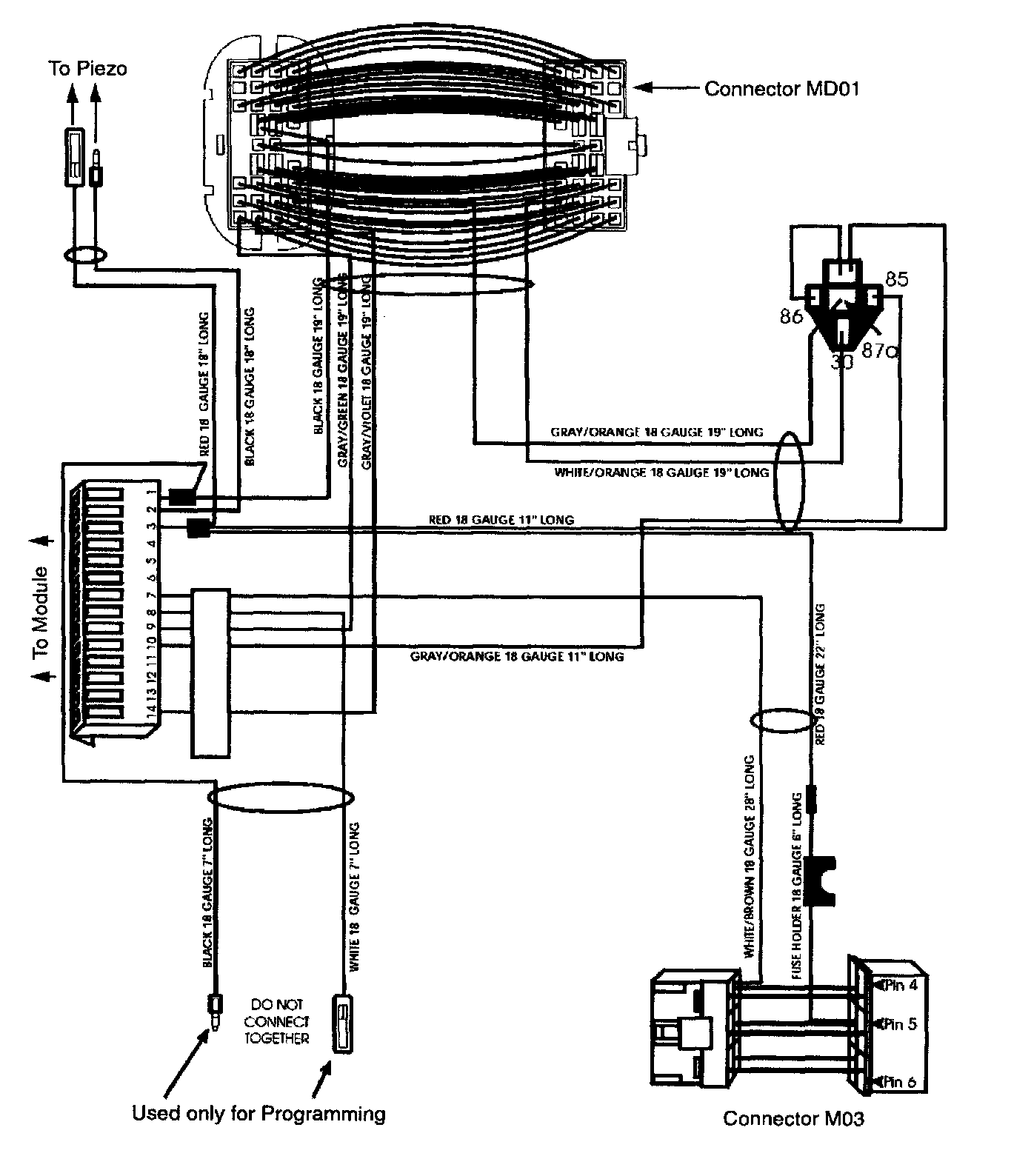 1. Plug a programming valet switch (p/n 00243-16130) into the white and black wires. If you don't have a valet switch, just tap the black and white wires together to count as a "click".