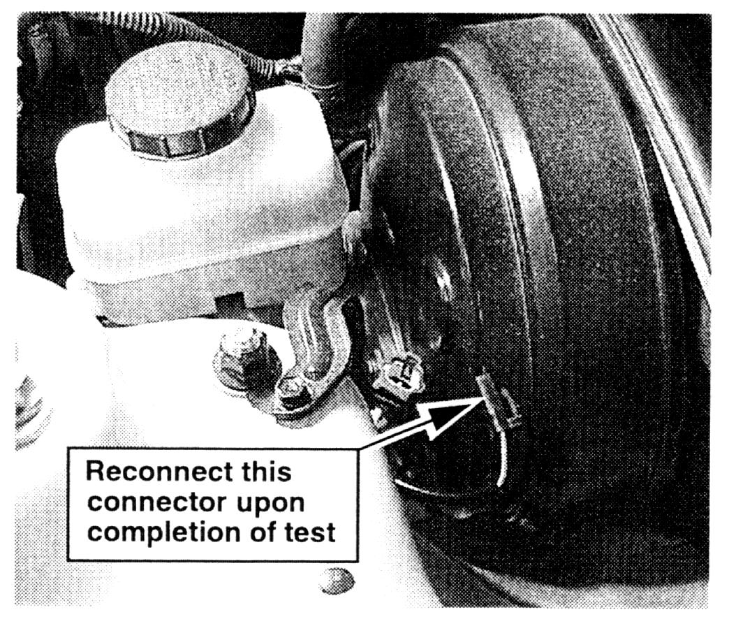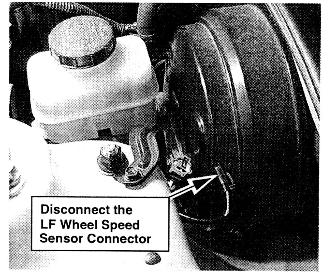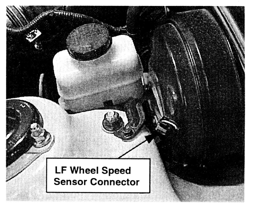 7. Reconnect the left front wheel speed sensor connector. The Traction Control switch will reset to "ON" with the ignition key off performed in step 6.