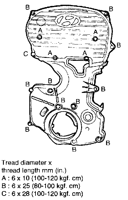 Crankshaft sprocket bolt: 110-130 Nm (1100-1300 kg.cm, 80-94 ft. lbs.)