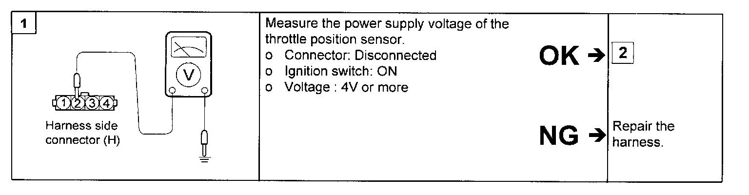 3. If out of specification, replace the throttle position sensor.