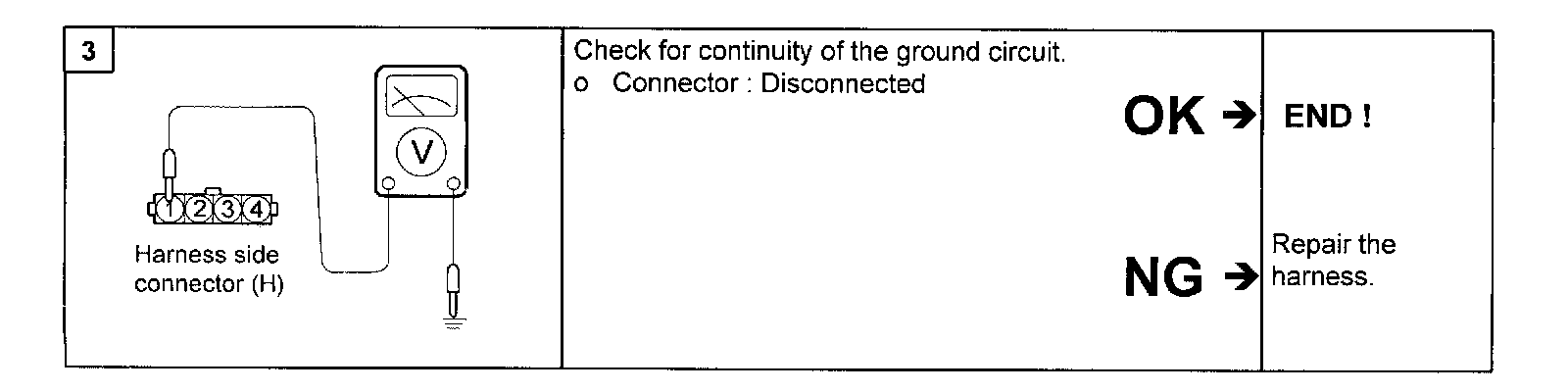 2. Check the continuity between terminal 2 and sensor ground