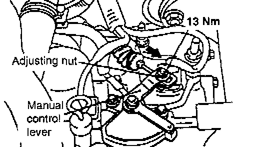 2. Loosen the control cable to manual control lever coupling nut to free the cable and lever.