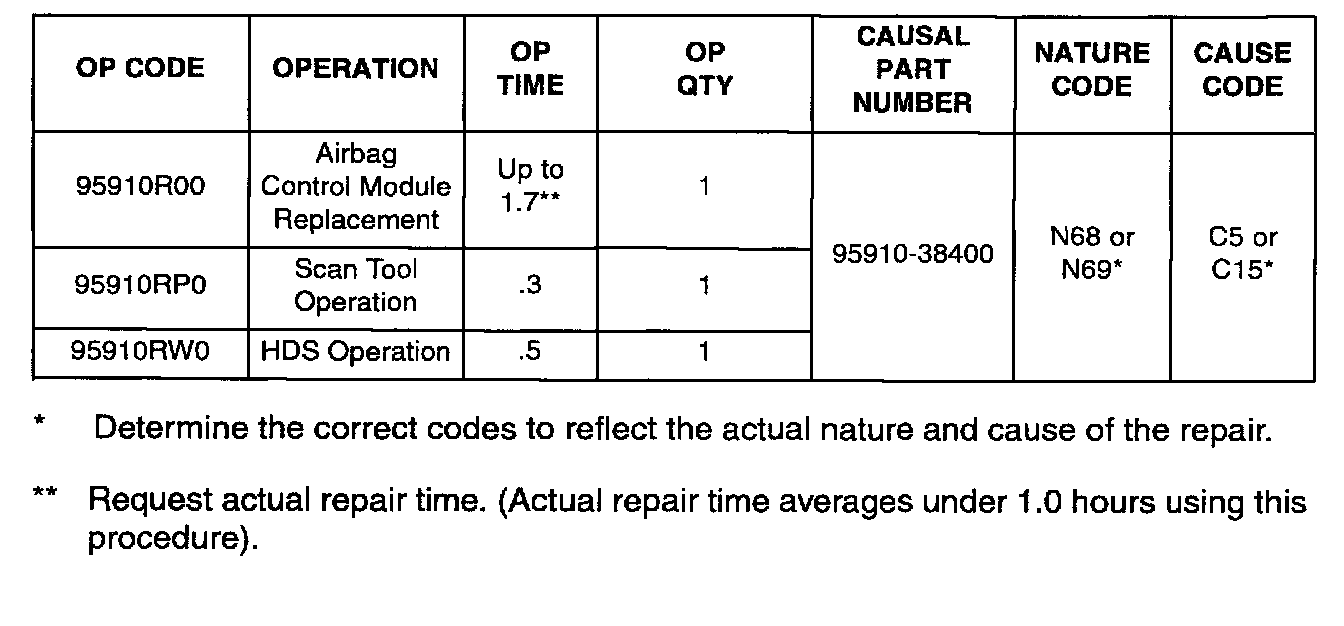 This bulletin provides the procedure for accessing the SRS Control Module (SRS CM) for the purpose of diagnosing the SRS system, replacing the SRS CM or accessing the wire harness. It also includes the Warranty Information for those operations.