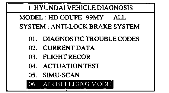 CAUTION: You have to obey maximum operating time (60sec) of ABS motor with Scan tool to prevent motor pump burnt.