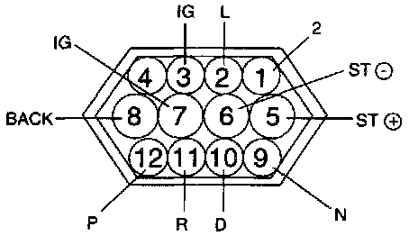 Check that there is continuity between connector terminals 10 and 11 when the shift lever is moved to the "N" range.