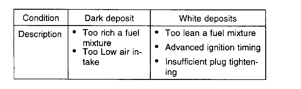 3. Check spark plugs for the following: