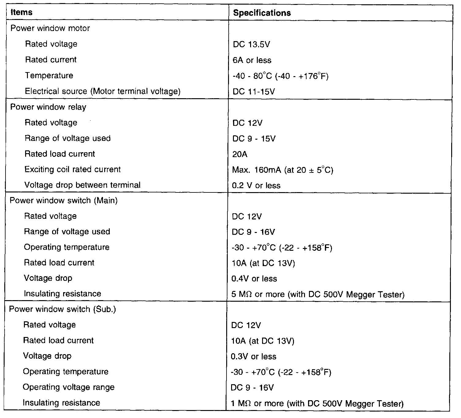 Electrical Specifications