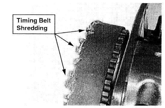 2. Inspect the front edge of the timing belt for fraying / shredding.