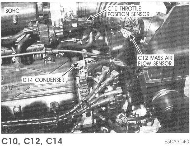 C10-Throttle Position Sensor, C12-Mass Air Flow Sensor, C14-Condenser: