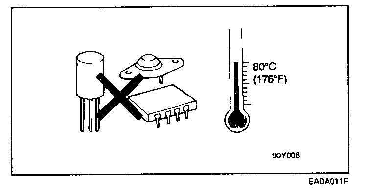 6. The electronic parts used in the computer, relays, etc. are easily damaged by heat. If there is a need for service operations that may cause the temperature to exceed 80°C (176°F), remove the electronic parts beforehand.
