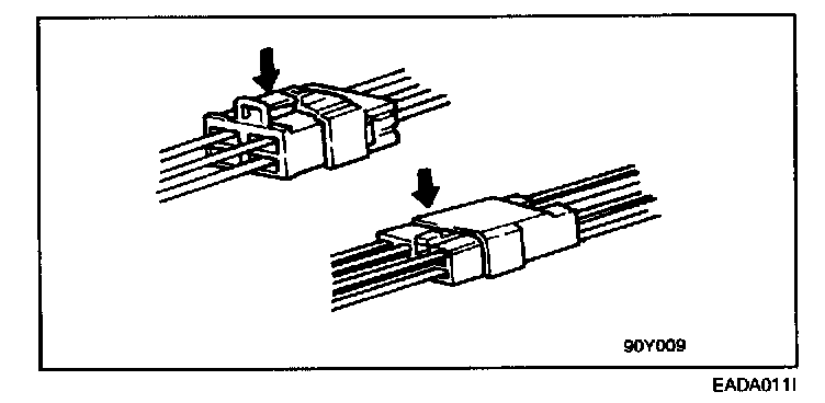 9. Disconnect connectors which have catches by pressing in the direction indicated by the arrows as shown in the illustration.