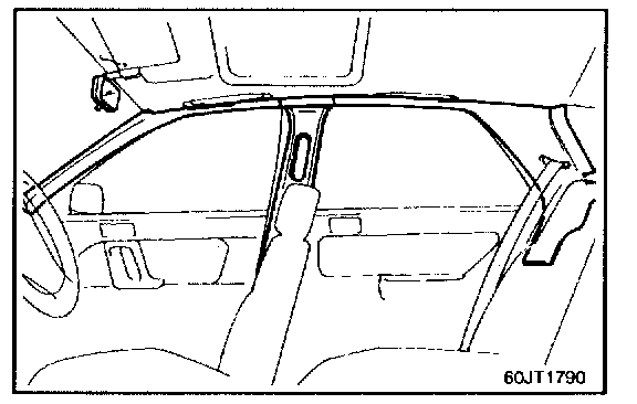 1. To remove the head lining, first remove the following parts: