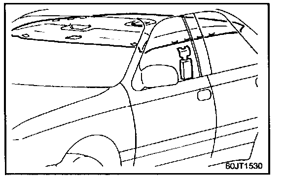 1. Remove the front seat belt upper mounting bolt.
