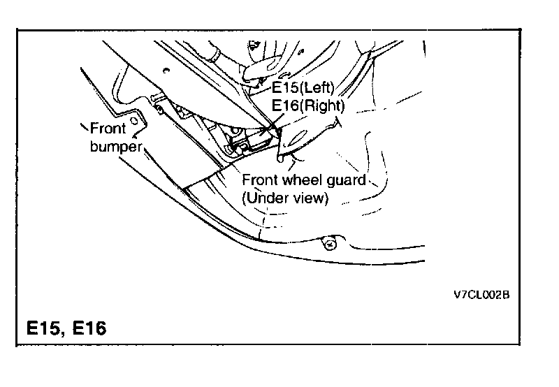 E15 Left front fog lamp, E16 Right front fog lamp: