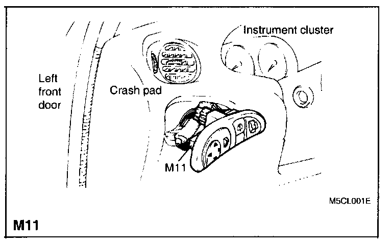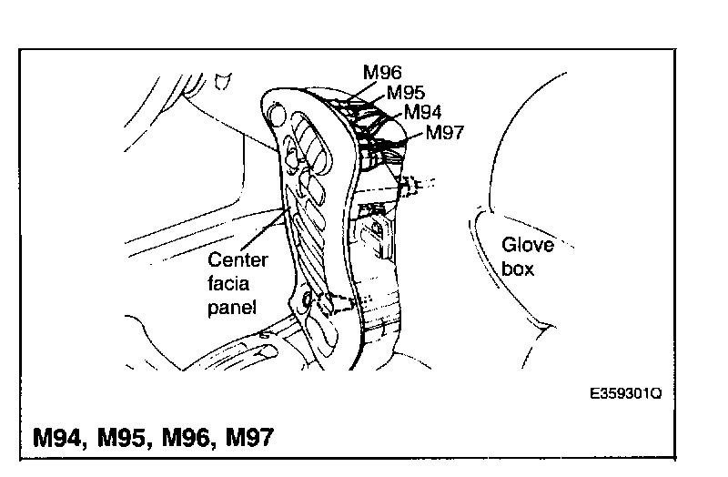 M94 Cruise switch, M95 Front fog lamp switch, M96 Hazard switch, M97 Rear defogger switch: