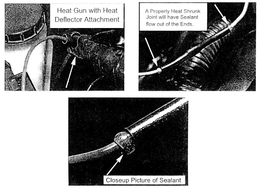 16. Using a heat gun with a heat deflector attachment, heat up the shrink wrap tubing until the tubing shrinks tightly and the sealant starts to flow out of the end of the tubing.