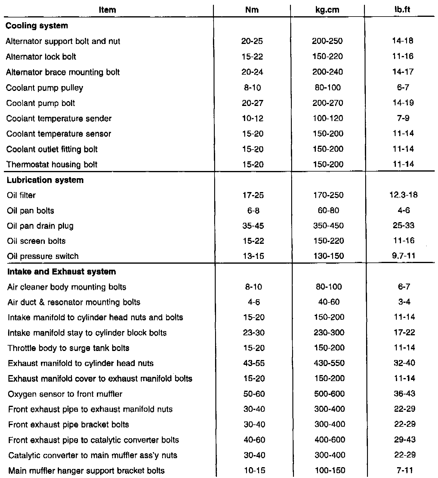 SERVICE SPECIFICATIONSCylinder Block Warpage (Cylinder Head Face):