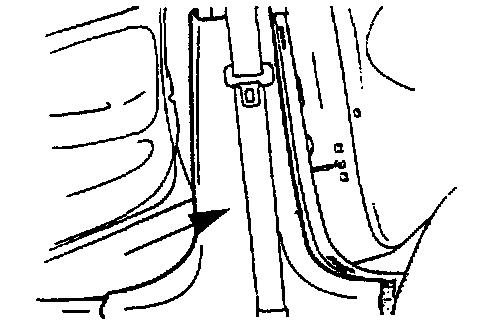 1. Remove the front seat belt upper mounting bolt.