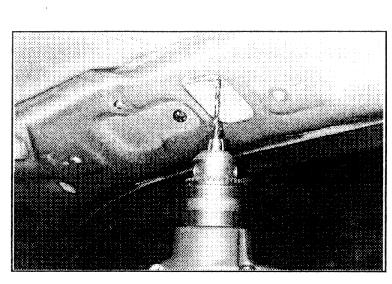 4. From inside the vehicle, drill a 3 mm (1/8 in.) hole through the center of each opening where the holes were punched.