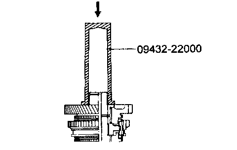 6. Install the second speed gear with needle roller bearing and bearing sleeve using the special tool.